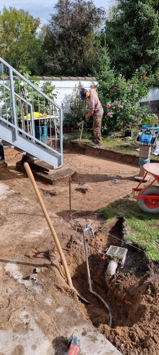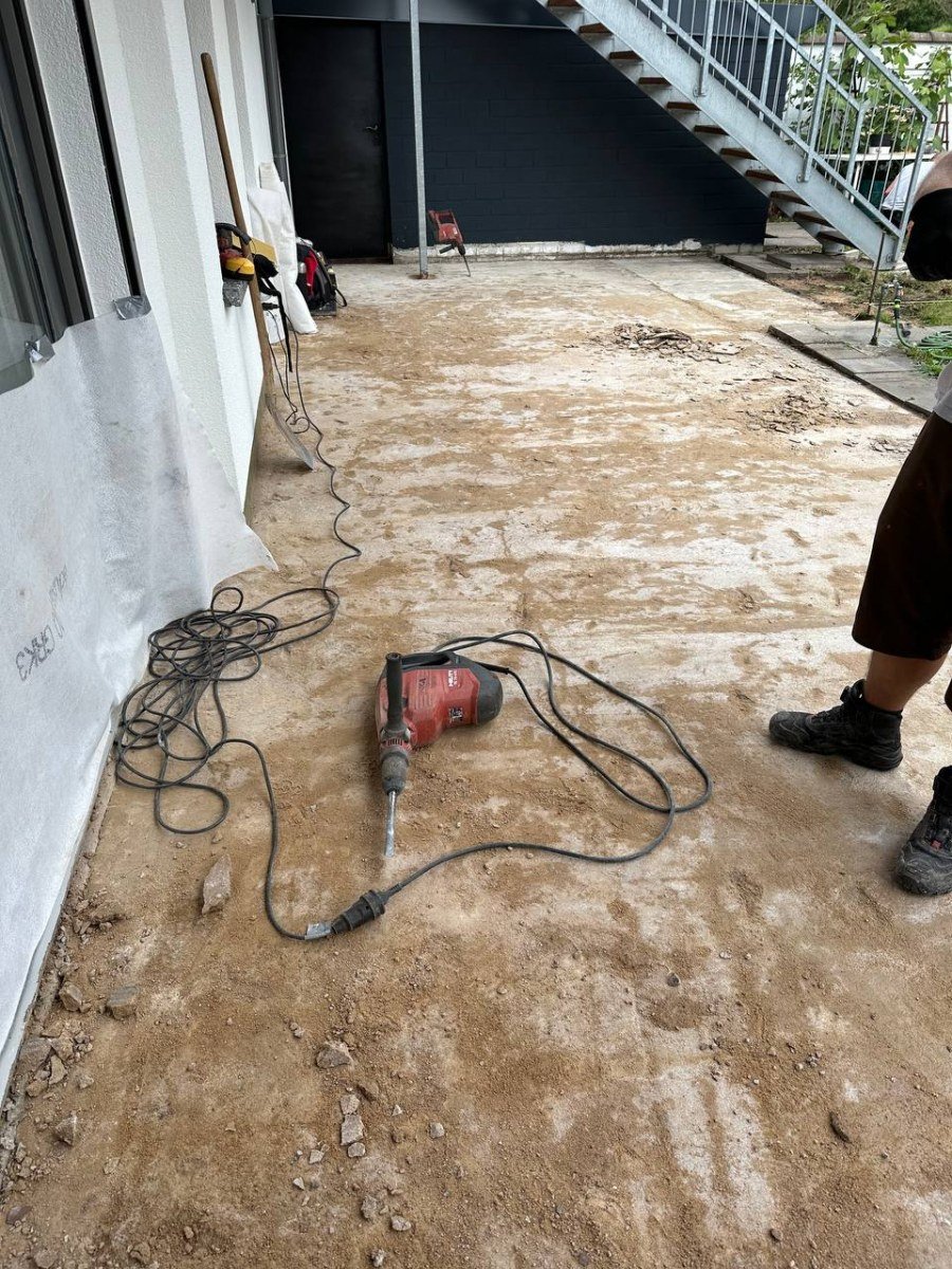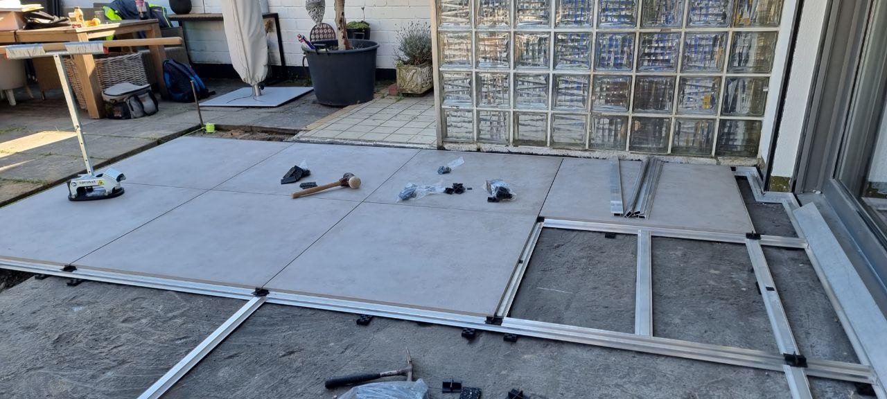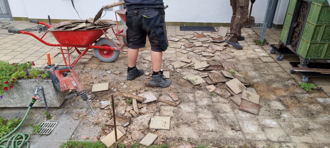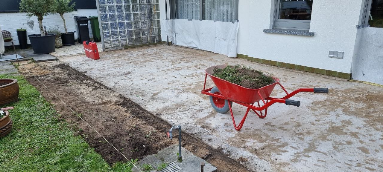Hierbei handelt es sich um eine Außengestaltung mit dem Talux-System von der Firma Talux für eine neue Terrassengestaltung. Zuerst wurden die alten Terrassenplatten entfernt und anschließend wurde die Fläche neu aufgebaut. Bei diesen Arbeiten wurden neue Rohre für die Verlegung von wichtigen Kabeln erschaffen. Daraufhin begannen die Arbeiten zur Verlegung für das Talux-System. Das Talux-Schienensystem ist ein Aluminium-Profilsystem, auf dem sich Stein-, Keramik- und kalibrierte Natursteinplatten sowie Holz- und WPC-Dielen einfach, schnell und wirtschaftlich verlegen lassen. Die Anwendungsbereiche sind zahlreich und umfassen u.a. Balkone, Terrassen, Flachdächer, Schwimmbad- und Pooleinfassungen, Dachterrassen und Gehwege. Aber auch individuelle Sonderbauten wie Treppenstufen oder Podeste sind umsetzbar. Anschließend wurden die Keramikplatten verlegt. Die Keramikplatten stammen von der Firma Fliesen Haus aus Münster. Nach der Verlegung der Keramikplatten war die Terrassengestaltung abgeschlossen und die Baustelle erledigt.