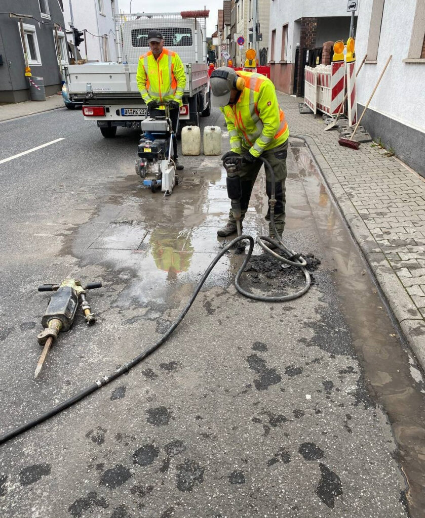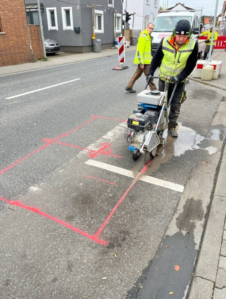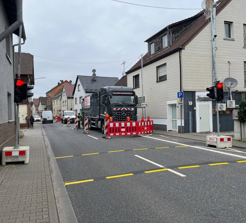 Zu Beginn wurde der Arbeitsbereich durch die Firma VSRM – Verkehrssicherung Rhein-Main – halbseitig gesperrt. Bei der Sperrung kamen auch Bauampeln zum Einsatz, die den Straßenverkehr während der Ausführung der Bauarbeiten regelten.