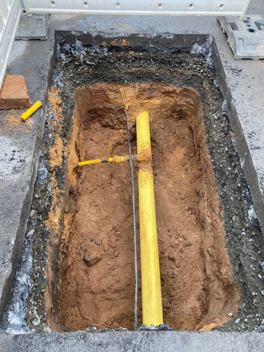 Nachdem die Baugrube vollständig geöffnet war, konnte unser Subunternehmer die Gasabtrennung problemlos ausführen. Anschließend wurde die Baugrube Schicht für Schicht ordnungsgemäß verfüllt. Danach wurde die Oberfläche asphaltiert und die Baustelle abgeschlossen.