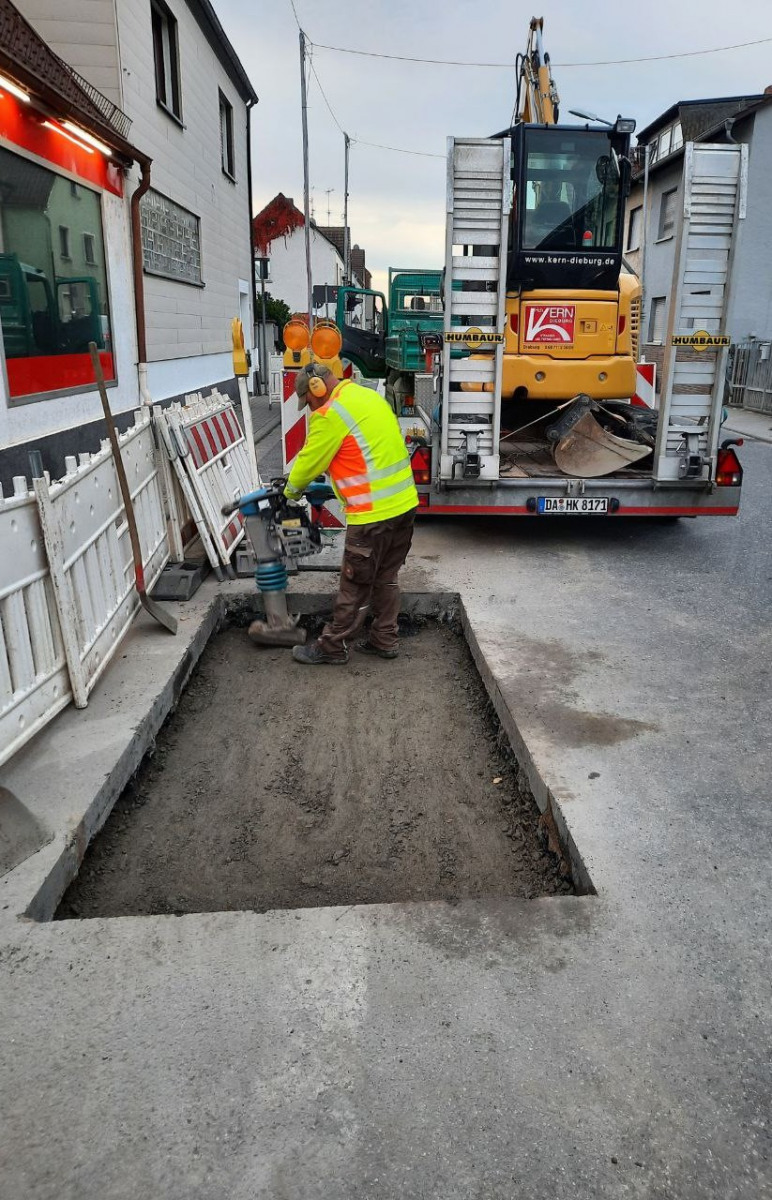 Zu Beginn wurde der Arbeitsbereich durch die Firma VSRM – Verkehrssicherung Rhein-Main – halbseitig gesperrt. Bei der Sperrung kamen auch Bauampeln zum Einsatz, die den Straßenverkehr während der Ausführung der Bauarbeiten regelten.